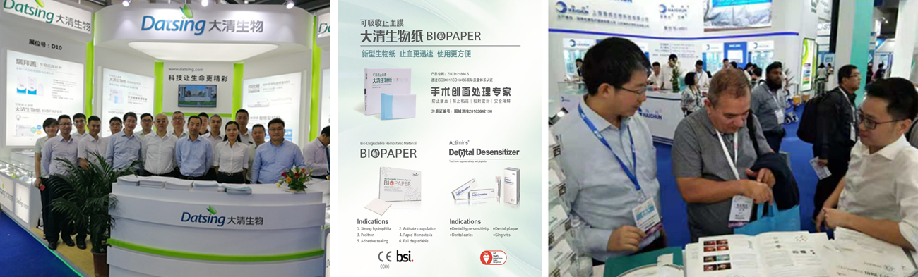 北京大清生物技術股份有限公司是國內最早進行再生醫學、組織工程及生物醫用材料產品產業化推進的企業之一。為深化產業戰略布局,組成了大外科、大骨科、口腔醫學三大事業部。本次展會可吸收止血膜(大清生物紙)、生物疝修補片(瑞拜善)、同種異體骨修復材料(拜歐金、骨捷)、同種異體肌腱修復材料(拜歐腱)、骨修復材料(植骨靈)、基因轉染豬皮(貼膚)、牙齒脫敏劑(奧敏清)、牙科種植體(1號種植體)等產品參展。其中可吸收止血膜、牙齒脫敏劑產品通過了歐盟CE及FDA認證。